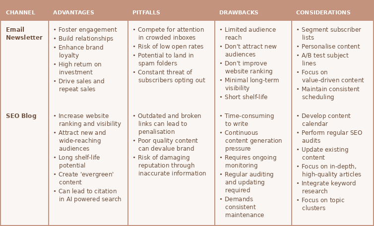 - Creates 'evergreen' content that continues to attract visitors over time, generating ongoing organic traffic that outlives newsletters, paid ads and social media.